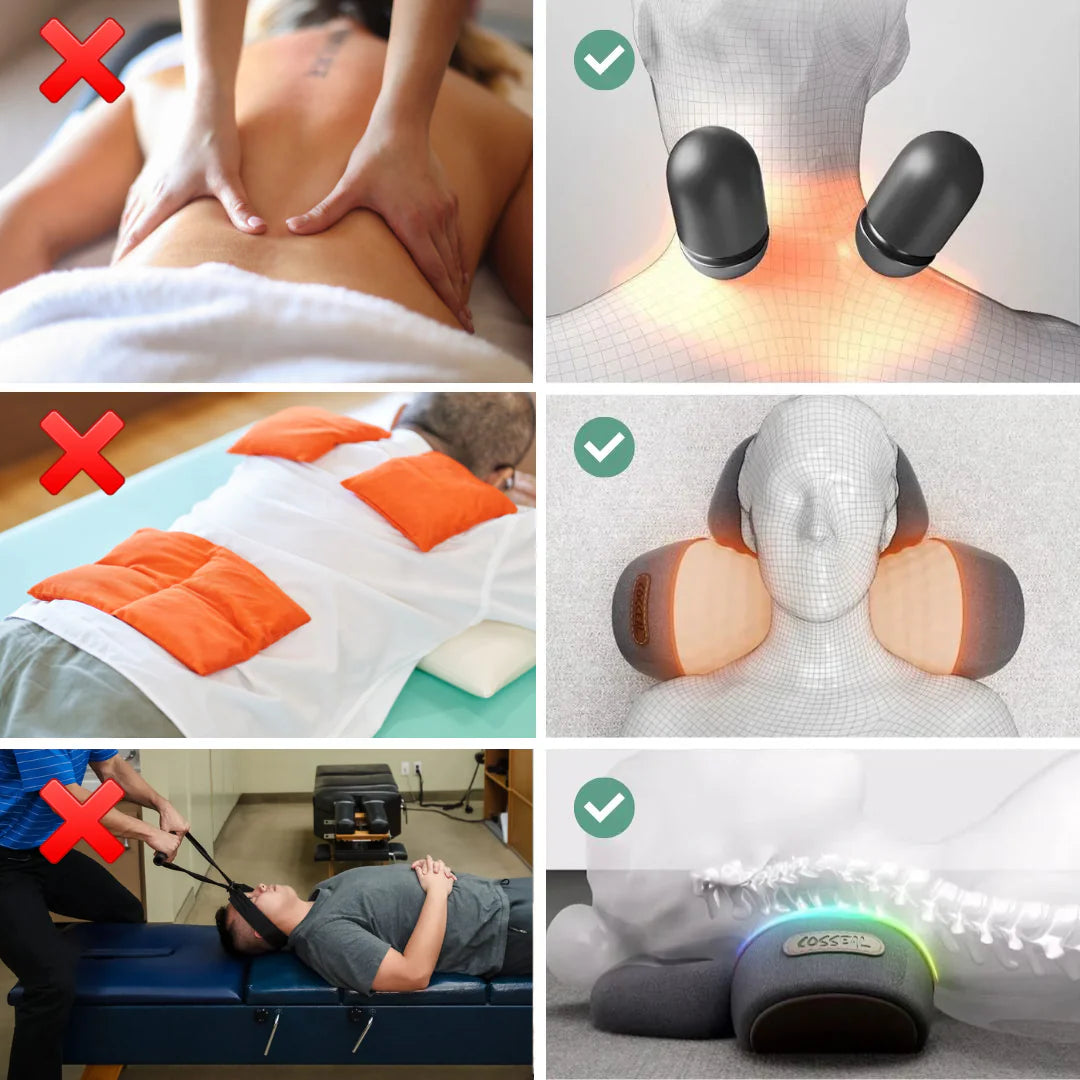 NeckGlow, servikal omurgadaki baskıyı nazikçe esnetmek ve hafifletmek için benzersiz bir teknoloji kombinasyonu kullanır.